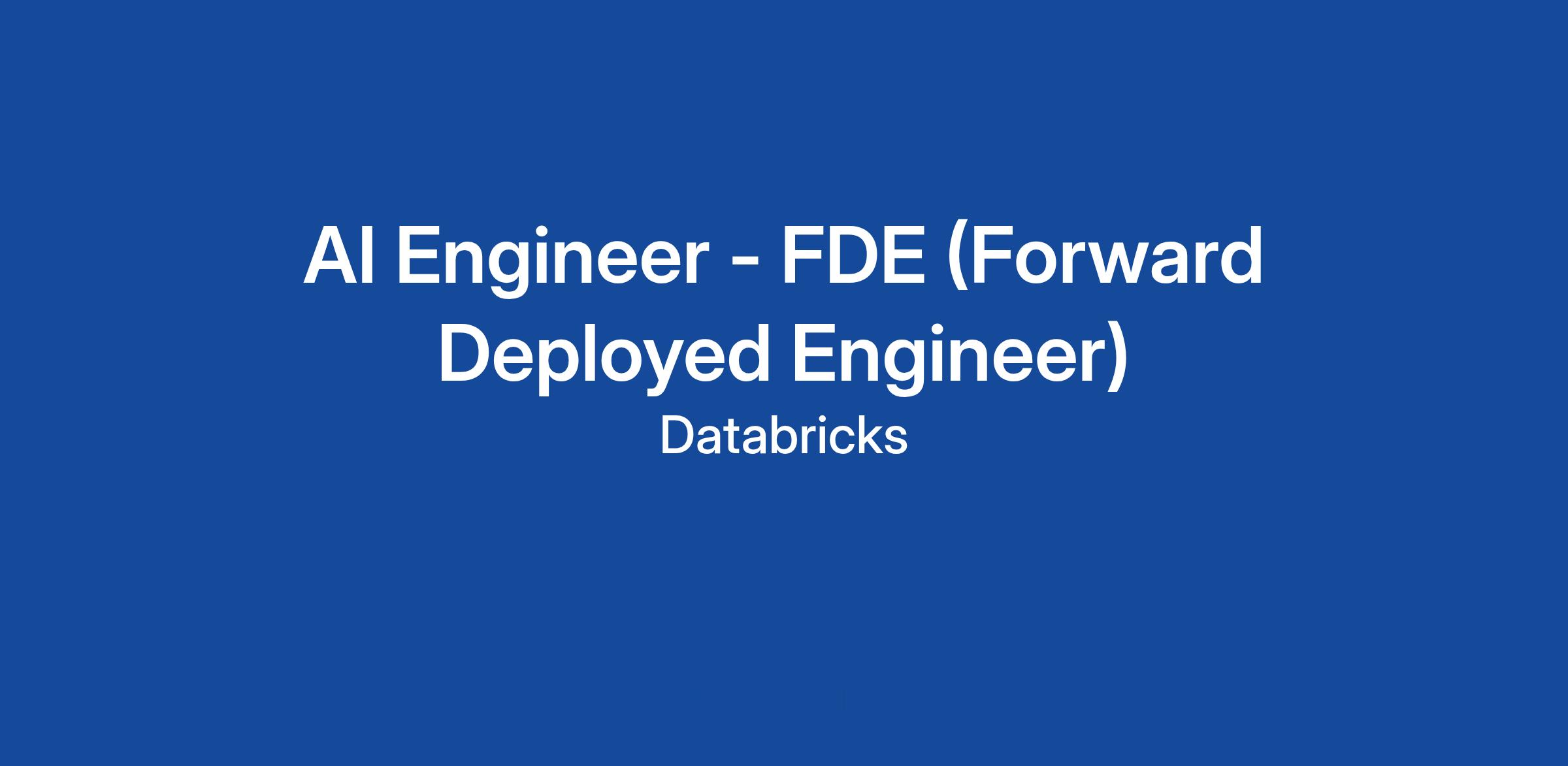 The AI Forward Deployed Engineering (AI FDE) team is a highly specialised customer-facing AI team at Databricks. We deliver professional services engagements to help our customers build and productionize first-of-its-kind AI applications. We work cross-functionally to shape long-term strategic priorities and initiatives alongside engineering, product, and developer relations, as well as support internal subject matter expert (SME) teams. We view our team as an ensemble: we look for individuals with strong, unique specialisations to improve the overall strength of the team. This team is the right fit for you if you love working with customers, teammates, and fueling your curiosity for the latest trends in GenAI, LLMOps, and ML more broadly.