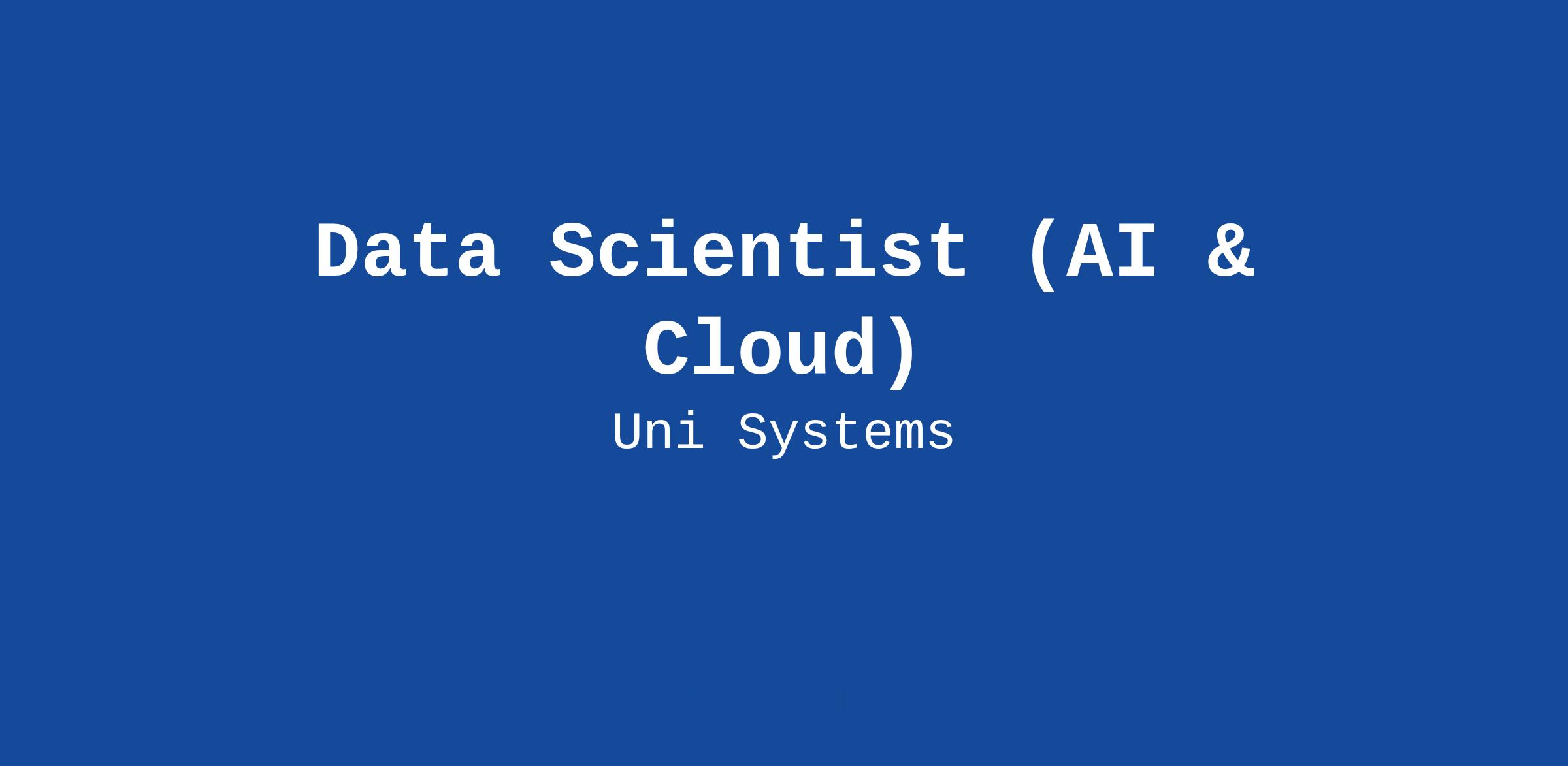 DescriptionAt Uni Systems, we are working towards turning digital visions into reality. We are continuously growing and we are looking for a Data Scientist (AI & Cloud) to join our UniQue team.
