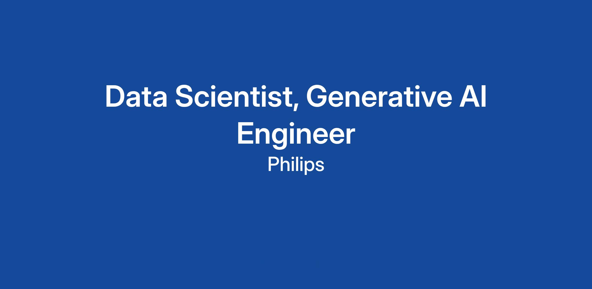 In this role, we are seeking an applied Data Scientist with hands-on expertise in Generative AI and Machine Learning Engineering to join our team. In this role, you will design and build innovative and ethically responsible Generative AI solutions that effectively address real-world problems, balancing technical feasibility with user needs and business impact. Working at the intersection of natural language processing and machine learning, you will contribute to developing AI solutions that directly impact patient outcomes and Philips' growth in the healthcare sector.